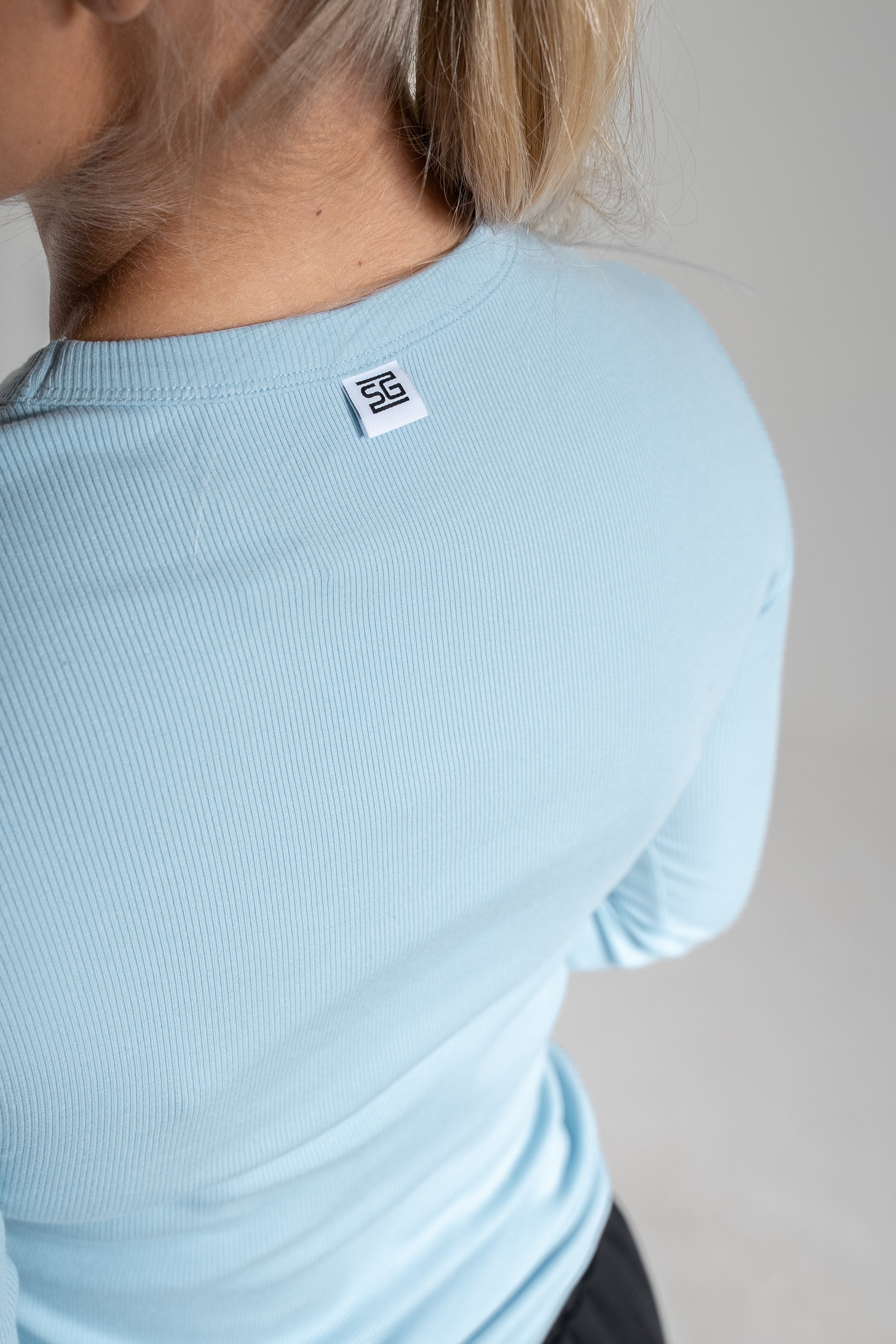 Hillitty yksityiskohta: Niskassa pieni label-logo viimeistelee lookin.